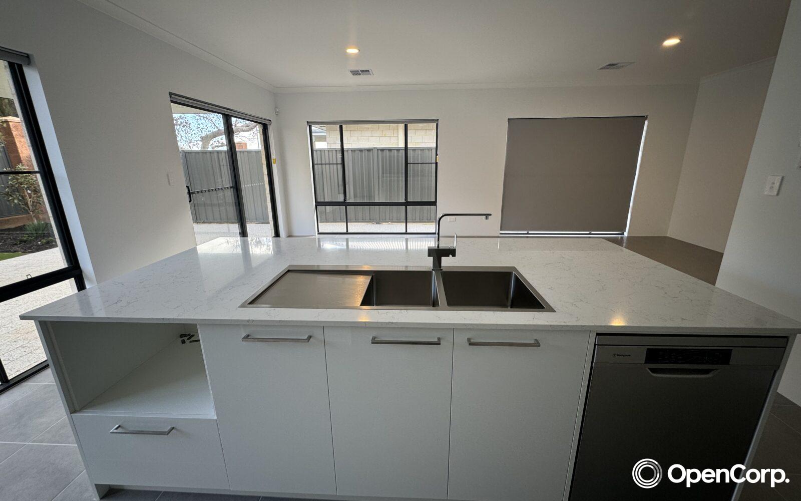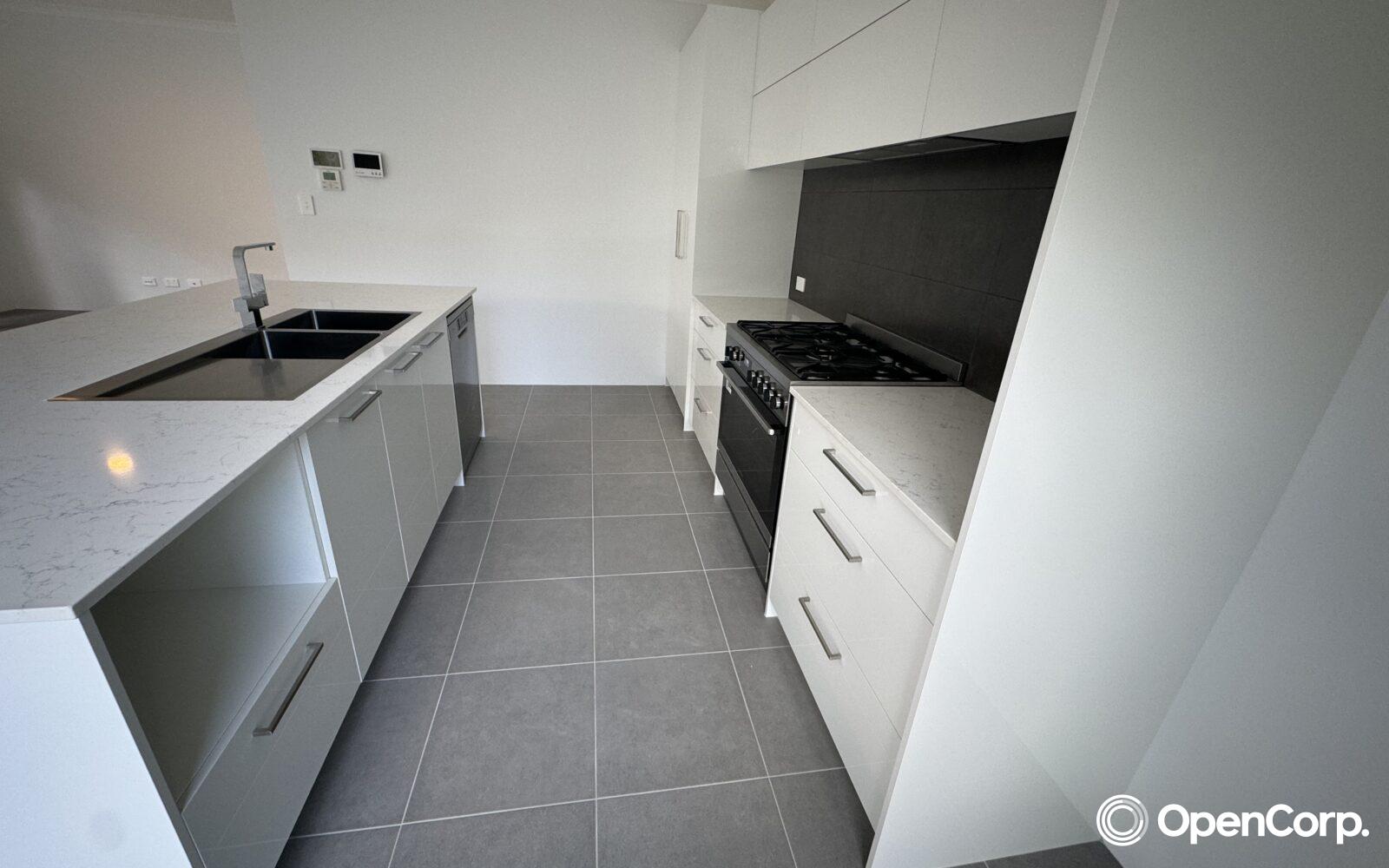 Stone benchtops in the kitchen, laundry, and bathrooms